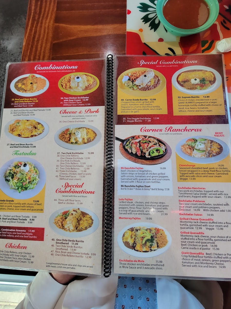 One Shredded beef & bean burrito, and One Beef Tostada served with rice and beans. ALL BURRITOS COME ENCHILADA STYLE