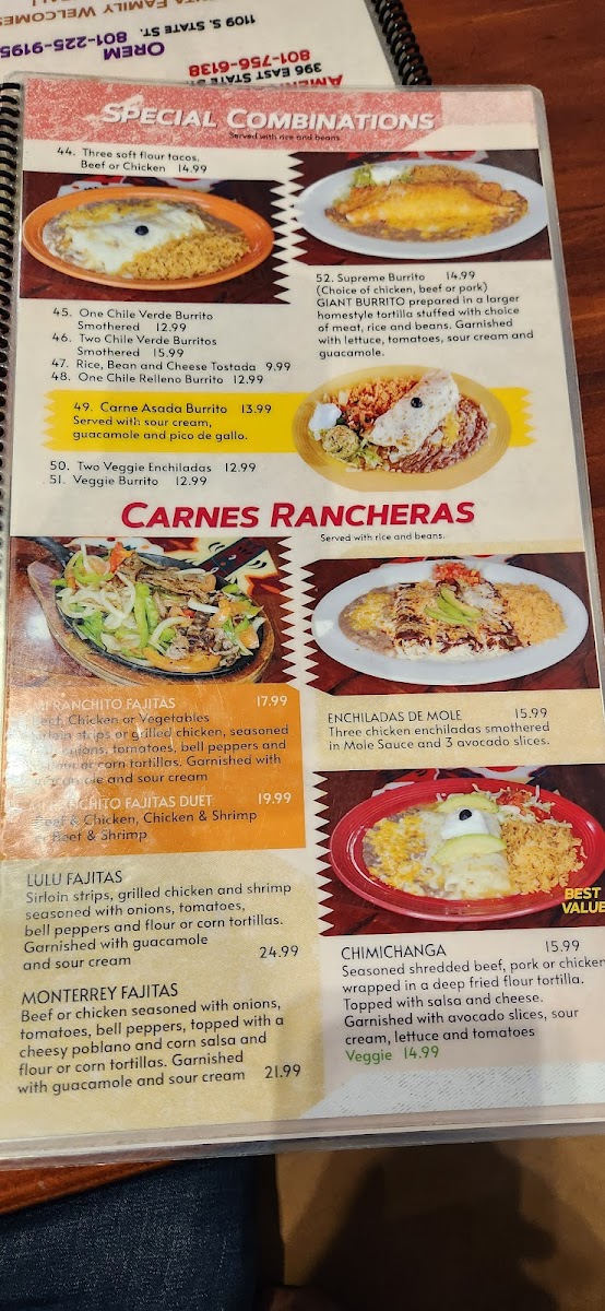 One Shredded beef & bean burrito, and One Beef Tamale served with rice and beans. ALL BURRITOS COME ENCHILADA STYLE