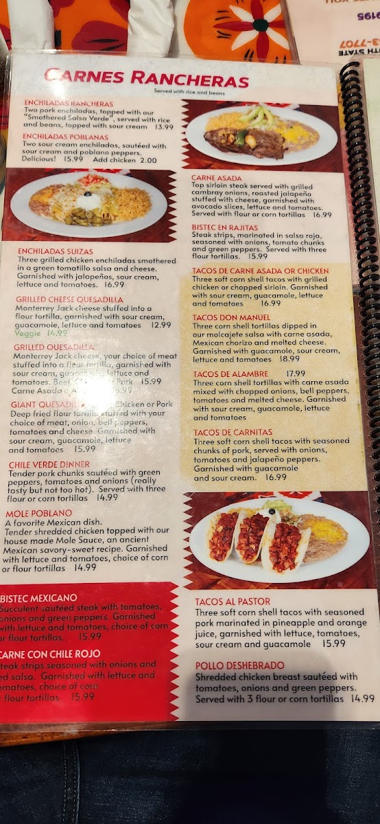 3 Enchiladas served on corn tortillas. Cheese, chicken, beef or pork.